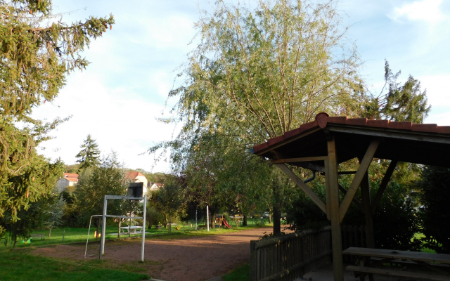 A proximité d’une aire de jeux pour enfant et de terrains de jeux, elle est idéale pour des repas en famille et sécuriser par des portails sur ces 2 points d’accès.